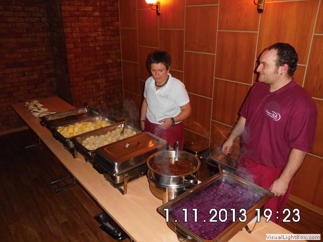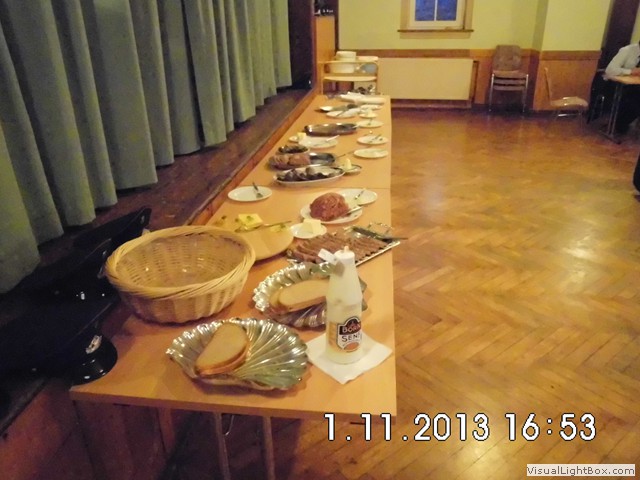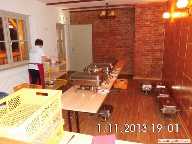 Der Partysevice Dagmar Rohte baut schon das Büfett auf u. der Saal füllt sich.