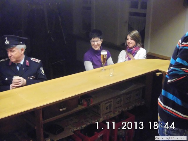 Die Bedienung für das Fest steht hinter der Theke u. versorgt alle mit Löschwasser.