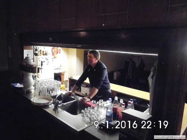 Lustige Sache sich mal in Gesellschaft zur Feile zu machen. Hubi hinterm Tresen amüsiert sich.