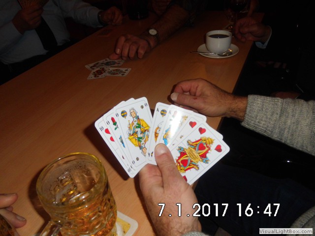 Am späten Nachmittag wechselt so manches Vermögen in der Tasche beim Doppelkopf den