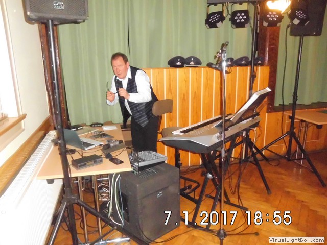 Der Alleinunterhalter Jürgen Vockrodt baut schon seine Technik auf.