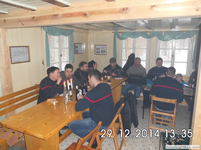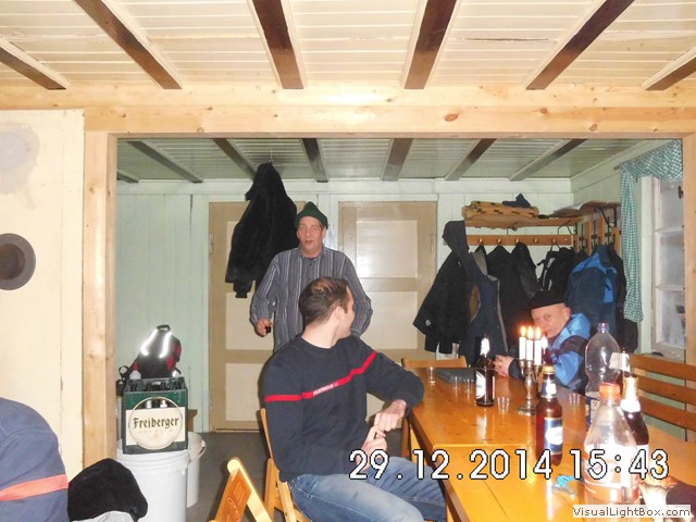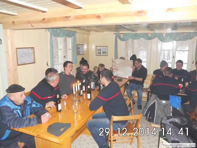 Einige Kameraden bevorzugen es draußen zu bleiben u. die anderen vergnügen sich in der warmen Hütte.