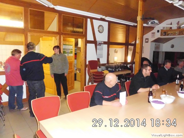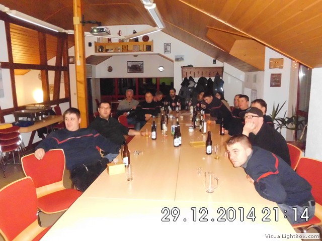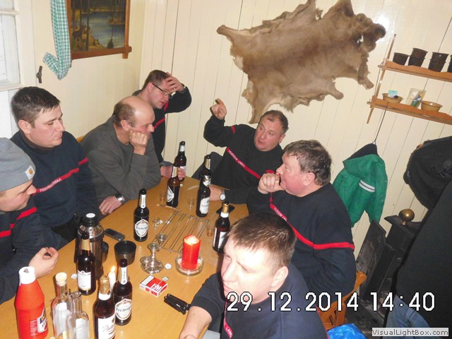 Alle freuen sich wieder nach 7 Stunden im Gerätehaus zu sein. Hier wird noch Sport geschaut während Bianca schon das Essen bringt.