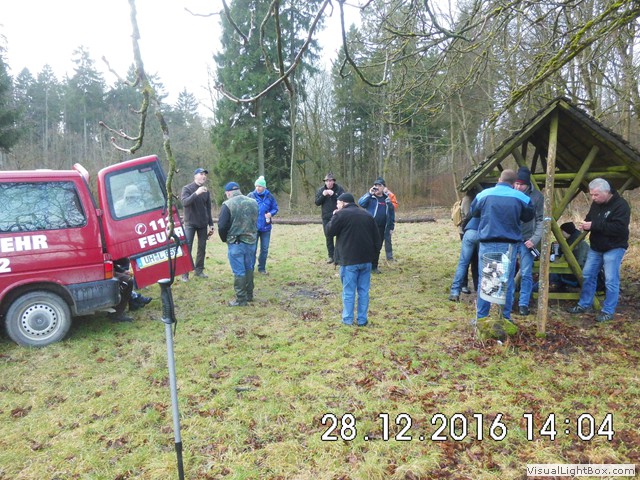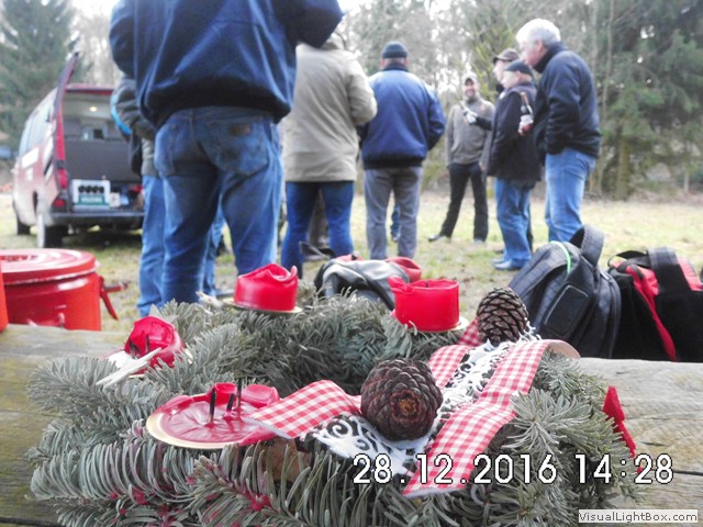 Glühwein, Bier u. andere kleine Getränke machen die Runde, aber auch Verpflegung aus dem Rucksack u. belegete Brötchen werden verzehrt.