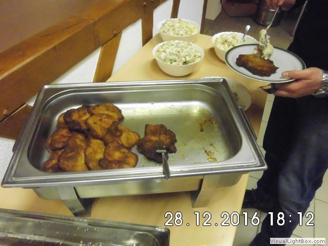 Ein warme Mahlzeit ist bei dem Wetter schon willkommen, frische Brötchen u. Glühwein u. kleine Getränke.