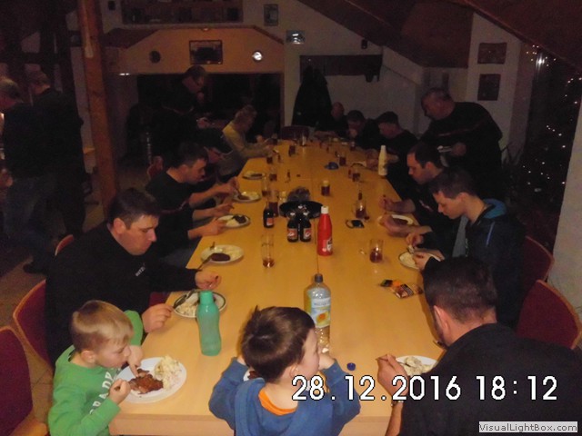 Auch die Tafel ist weihnachtlich dekoriert u. alle Kameraden genießen diese Rast am Keller. Nach einer schönen Rast geht es dann