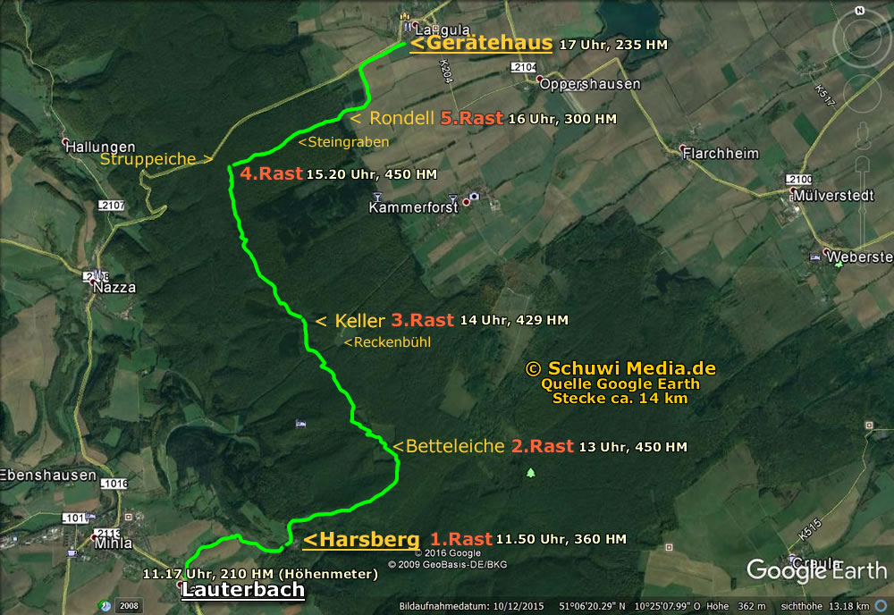 Von Lauterbach über den Harsberg nach Langula, ca 14 km.
