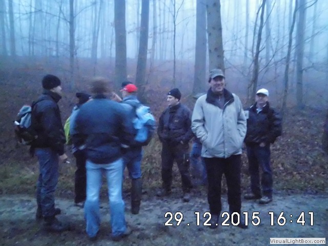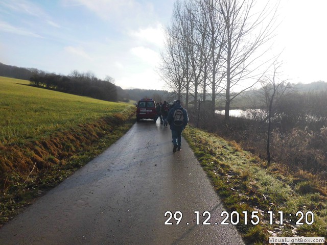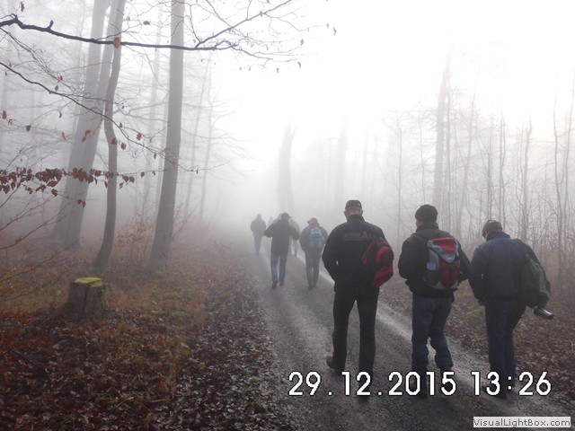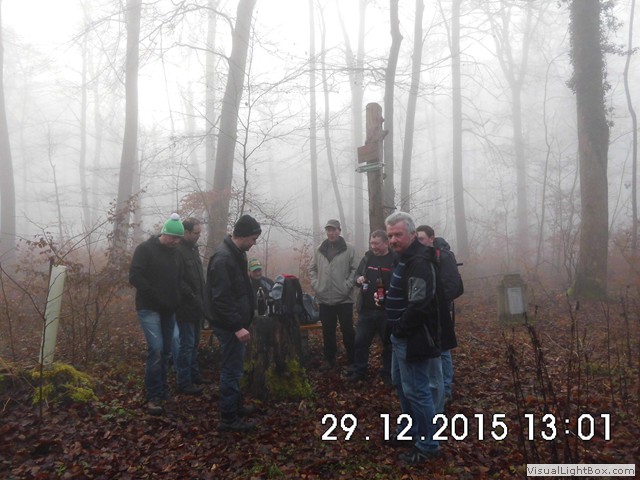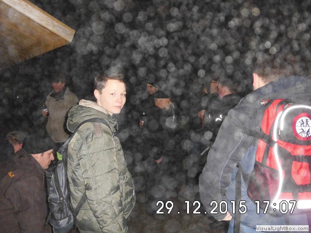 Man könnte denken es schneit, was ja zu unserer Winterwanderung passen würde, aber es ist nur der Nebel der sich im Blitzlicht bricht !
